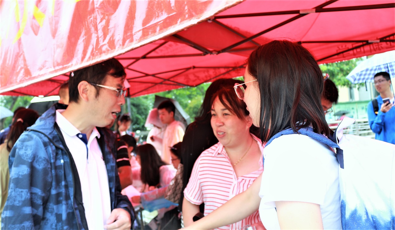 上午十时小雨连绵,学院党委书记郑正奇、党委副书记马红梅、团委书记梅月平一行来到学院迎新棚前,仔细询问了我院迎新工作的开展情况。郑书记亲切慰问新生学院志愿者,关心新生报到情况,并与志愿者合影留念。