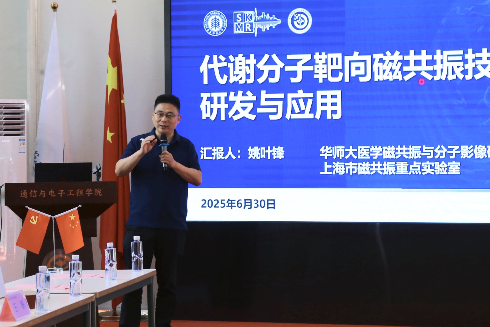 在学术报告环节,各位专家学者依次进行精彩报告。医学磁共振与分子影像技术研究院姚叶锋教授以“代谢分子靶向磁共振技术的研发与应用”为题,深入介绍了该技术的研发历程以及在相关领域的广泛应用前景,为在场师生展示了磁共振技术在分子层面的前沿探索与实践成果。