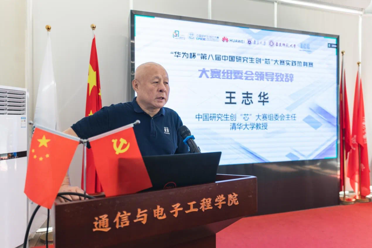 中国研究生创“芯”大赛组委会主任、清华大学王志华教授阐述了大赛在集成电路人才实践中的作用,并介绍了本届实践热身赛的特色。