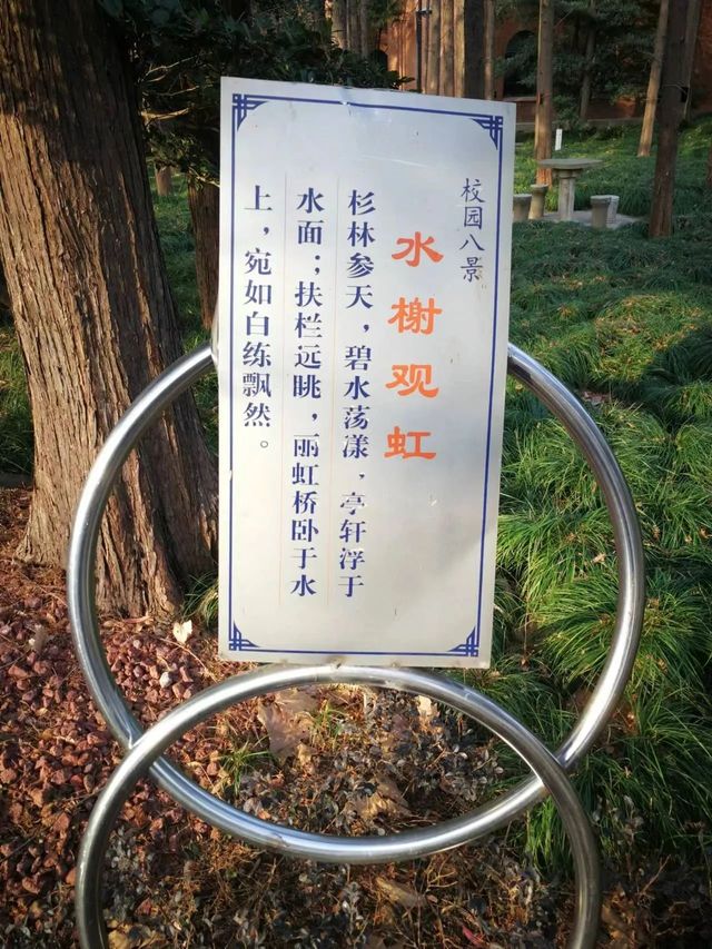 呵,丽娃河、夏雨岛、丽虹桥、观虹榭、仰虹亭五位一体,这里永远有春花斓漫、夏荷临风、秋月澄波、冬雪美景!哪管四季更迭、岁月轮回,每当红红圆圆的落日渐渐躲到三馆身后时,绚丽的晚霞便悄悄洒满了师大园,人们沉浸在这曼妙的境界里……