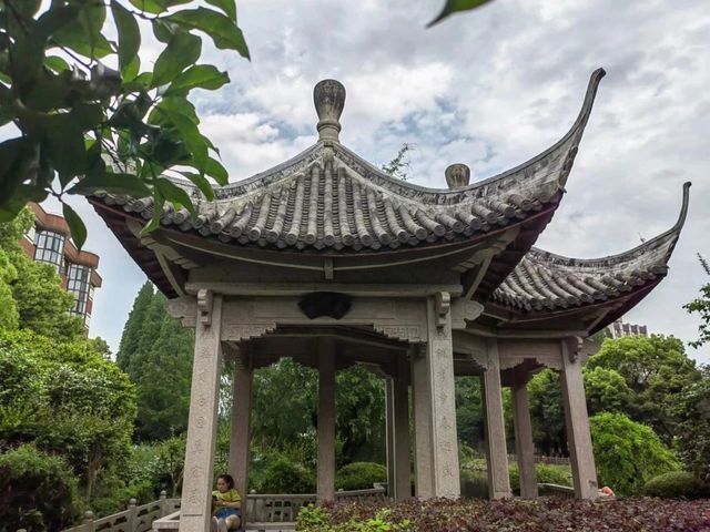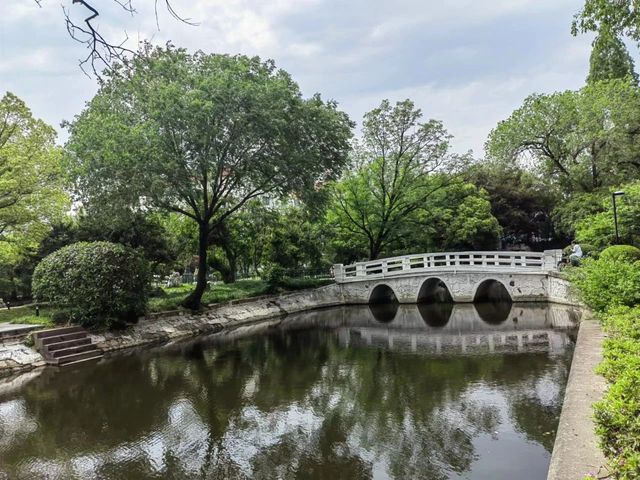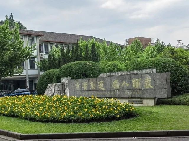 向北眺望,“接天莲叶无穷碧”的荷塘尽处便是诗意朦胧秀色迷人的夏雨岛,“岸芷汀兰,郁郁青青”,岛南端,在70周年校庆时重修的长廊亭似在“仰望”前方的卧波长虹—丽虹桥,若称此亭为“仰虹亭”,当不失为顺其自然的美谈趣事,该亭新颖别致的造型所营造的意境令人浮想联翩,“长亭外,古道边,芳草碧连天”…… 收拢思绪,东视华夏路,两旁粗壮的梧桐树浓荫蔽日,在炎夏的骄阳下得其庇护,顿觉通体凉爽惬意。回眸西望,展现在我们眼前的是一幅气势磅礴的宏伟画卷。迎面是永立心头的校训碑,“求实创造,为人师表”,校训碑后的中心区域是绿草如茵的平坦开阔草坪,可供聚会和息憩,数学馆和化学馆相视而立于草坪外南北两侧,各为简洁明亮的三层大楼,稍远处恢弘的三馆(原地理馆、生物馆和物理馆)巍然屹立,傲视苍穹。这些教学科研大楼岸然肃穆,学子们在这知识的海洋里勤奋研习求索,三馆前,高大伟岸的毛主席塑像正叱咤风云挥手指引我们前进!