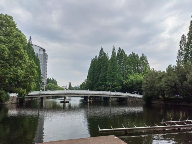 有时伫立丽虹桥上,环顾四周,绿树繁花,美景养眼。抬头仰望,白云在蓝天中飘动,时时变幻引人臆想。遥视南方,丽娃河东岸高高耸立的中学校长培训中心大楼是中学校长的摇篮,西岸友谊路旁隐约可见的泉州亭见证了泉州校友对母校的一片深情,丽娃河尽头处更有三株百年梧桐与红楼修竹相伴相守。