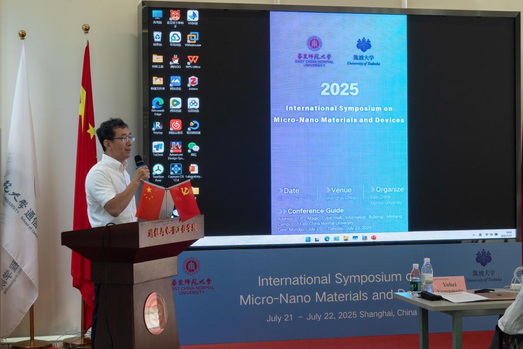 暑假期间,为深化中日两国在微纳材料与器件领域的科研合作与人才交流,由华东师范大学、日本筑波大学联合主办的“2025微纳材料与器件国际研讨会”在华东师范大学闵行校区信息楼一楼魔方厅召开,此次会议由我校通信与电子工程学院承办。来自日本筑波大学、华东师范大学、上海大学、苏州大学的20余名中外专家学者作最新研究进展报告,会议由通信与电子工程学院陈少强教授主持。