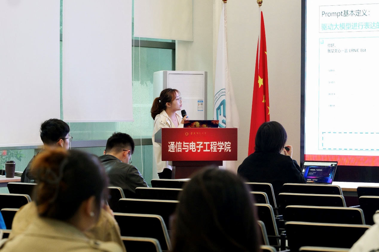 通信与电子工程学院人工智能与大模型方向研究生刘舒媛围绕大模型中prompt提示工程使用基础,探讨多种prompt优化技巧,指导大家通过通用技巧、Trick法和工具法撰写多样化的高质量prompt,提高大模型的使用效率。