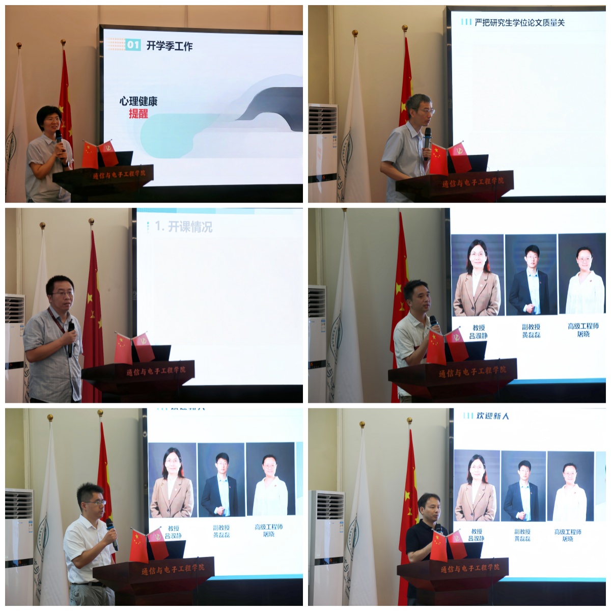 会上,学院党委副书记王山玲、副院长李庆利、副院长张润曦通报了分管相关工作。本学期新入职的郑勇辉副教授、周龙达副教授及秦德阳博士后在会上热情洋溢地作了自我介绍,表达了加入通信学院的荣幸与喜悦,并对未来的教学科研工作充满期待。