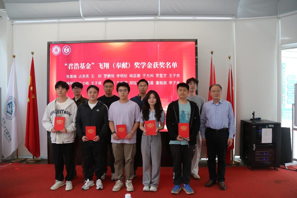 2024年,共有58位在科研创新、专业学习、党团服务、科创竞赛等方面取得突出成果的优秀学生获得君浩基金。7位获奖学生代表讲述自己的成长故事,以《青春的信号》为主题展现青年风采。褚君浩院士亲自为获奖学生颁奖。