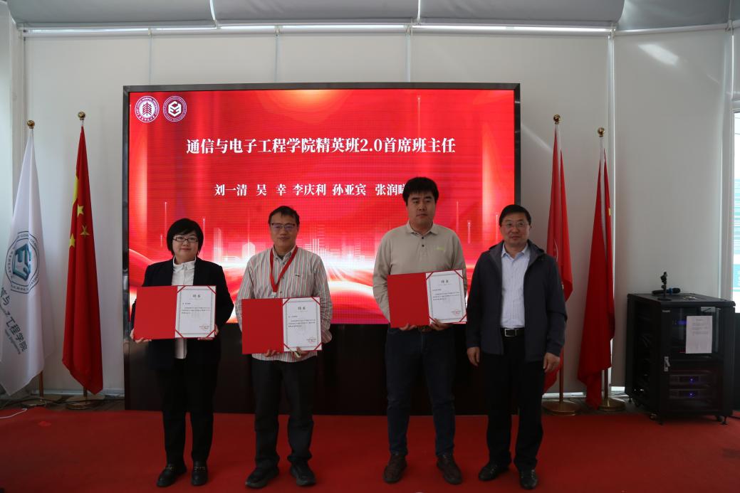 教育发展基金工作办公室副主任张赫为同学们颁发通信工程精英班奖学金荣誉证书