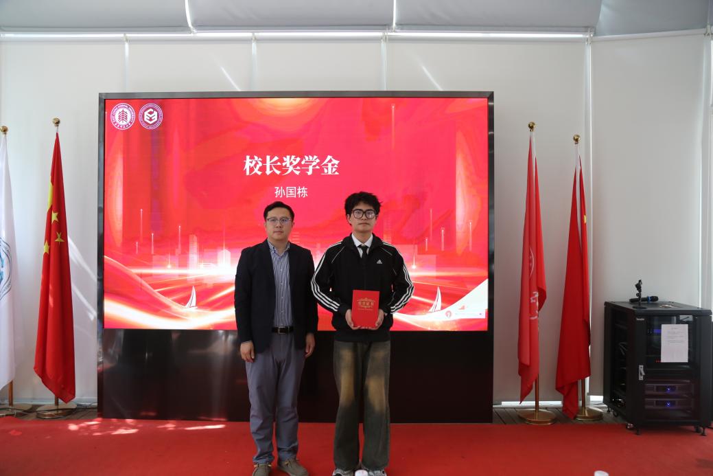 2021级通信工程专业本科生孙国栋作为国家奖学金、校长奖学金获奖学生代表发言。他以“泊松中淬炼心境、负熵中突破局限、责任中锚定使命”为主题,向师长和同学们分享自己的成长体会。他谈到,面临这个机遇与挑战并存的时代,青年人要以内心的热情和勇敢的德性拥抱真理,迎接属于自己的或跃在渊的时刻,努力让个人的成长与国家的发展同频共振!