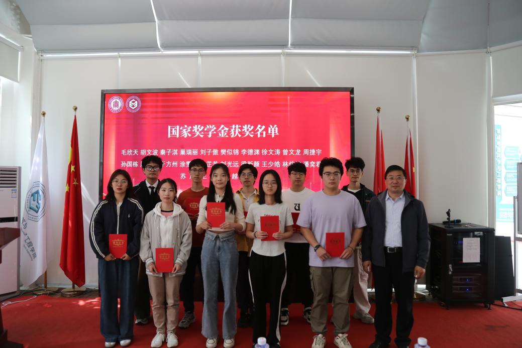 通信与电子工程学院院长吕岳为获得国家奖学金的获奖学生代表颁奖